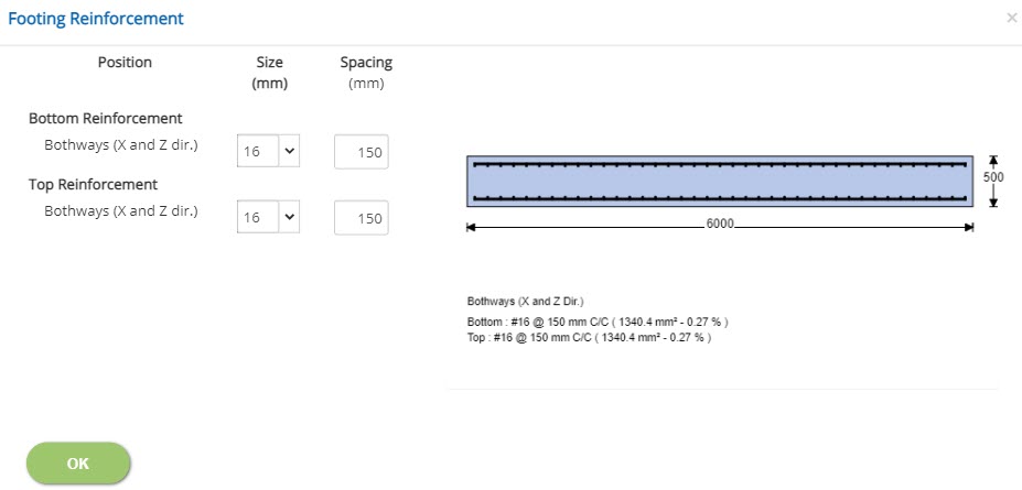 Click this button to open the pop-up dialog to define the footing reinforcement details.